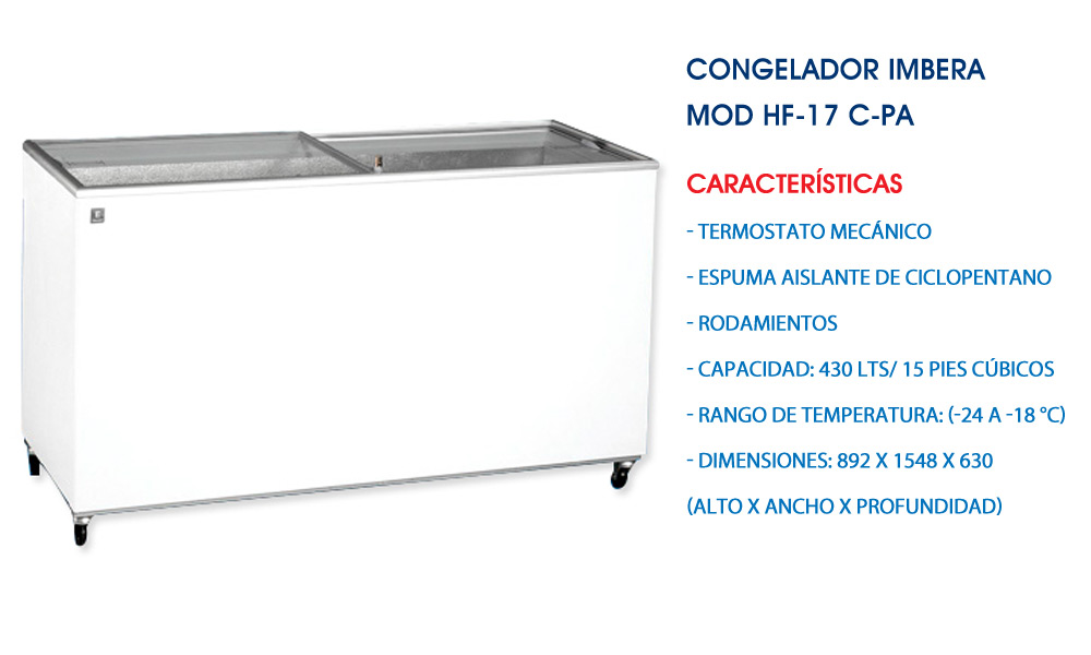 Congelador Tapa de Cofre Imbera Mod HF-17
