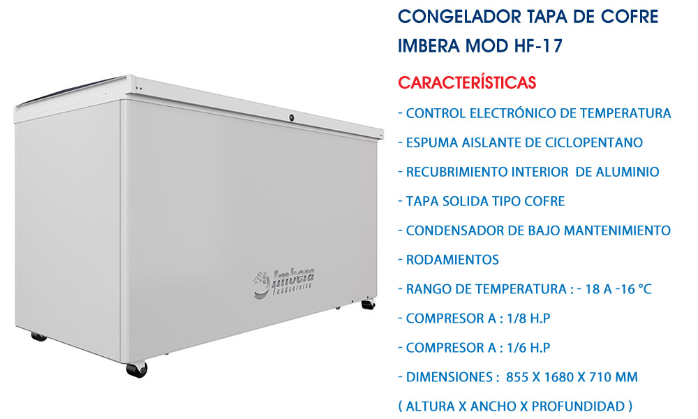 Congelador Tapa de Cofre Imbera Mod HF-17